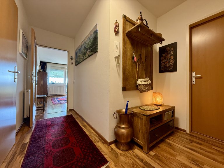 Der weitläufige Vorraum schafft bereits beim Eintreten ein angenehmes Raumgefühl und wird durch einen praktischen Abstellraum ergänzt, der zusätzlichen Stauraum bietet.