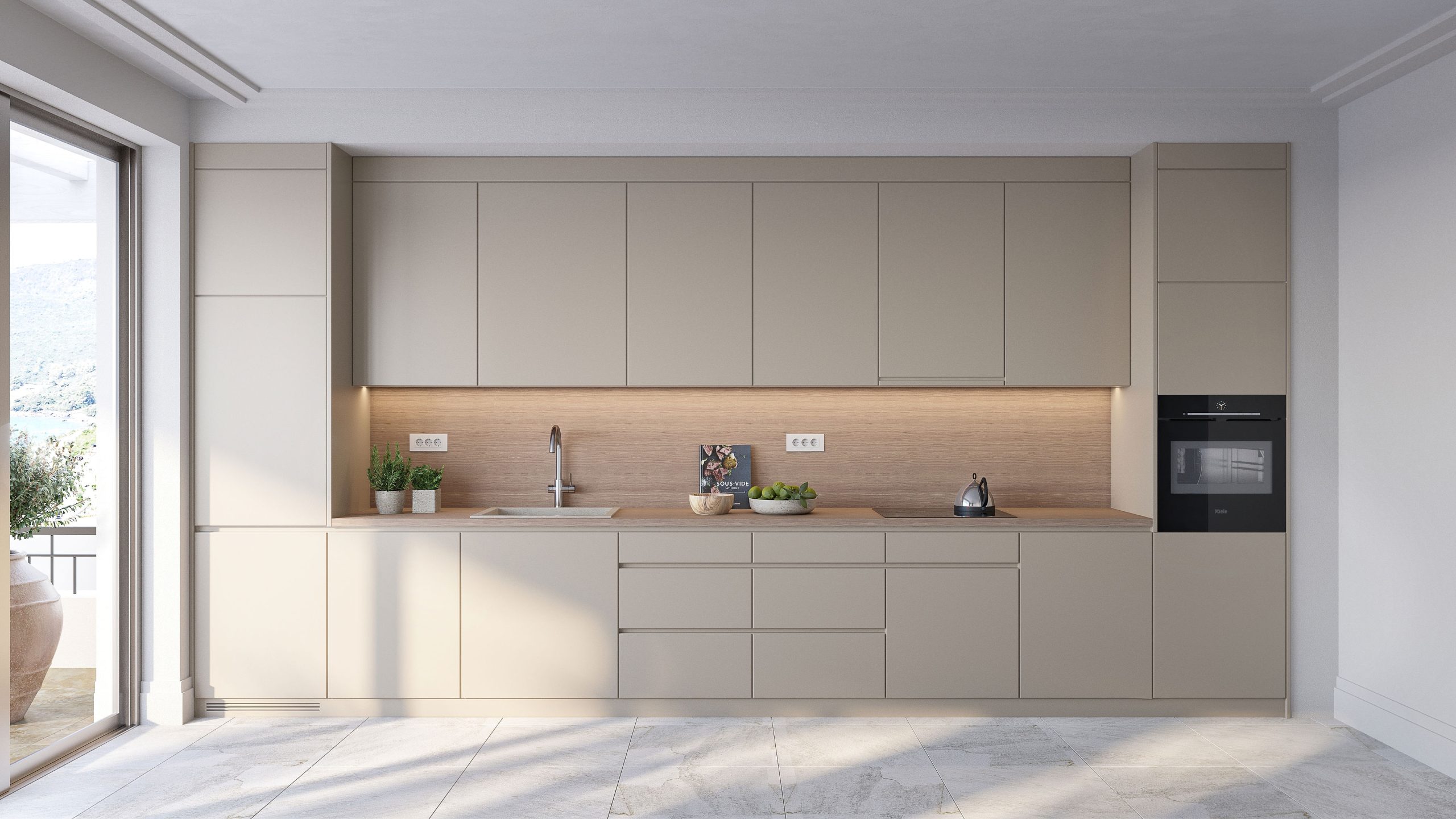 Wohnbereich: Der großzügige offene Wohn- und Essbereich ist das Herzstück dieser Wohnung. Hier verschmelzen Kochen, Essen und Entspannen zu einem einladenden Raum. Die bodentiefen Fenster ermöglichen nicht nur einen lichtdurchfluteten Raum, sondern gewähren auch einen bezaubernden Blick auf das azurblaue Meer. Vom Wohnbereich aus gelangen Sie direkt auf die großzügige Terrasse, die perfekt für gesellige Abende oder entspannte Sonnenuntergänge geeignet ist.
