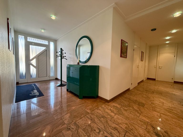Beim Betreten des Hauses erwartet Sie ein weitläufiger, einladender Eingangsbereich. Hier wie auch im gesamten Gangbereich wurde hochwertiger Granitboden verlegt – robust, elegant und zeitlos.
