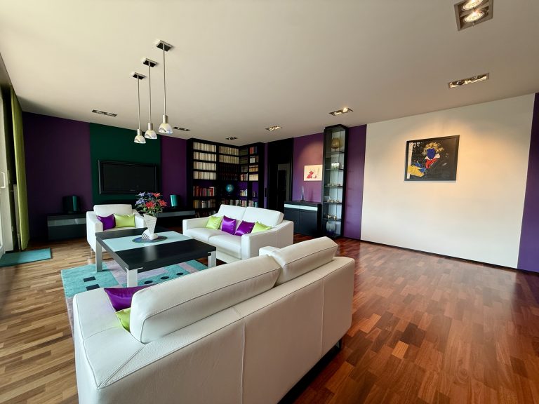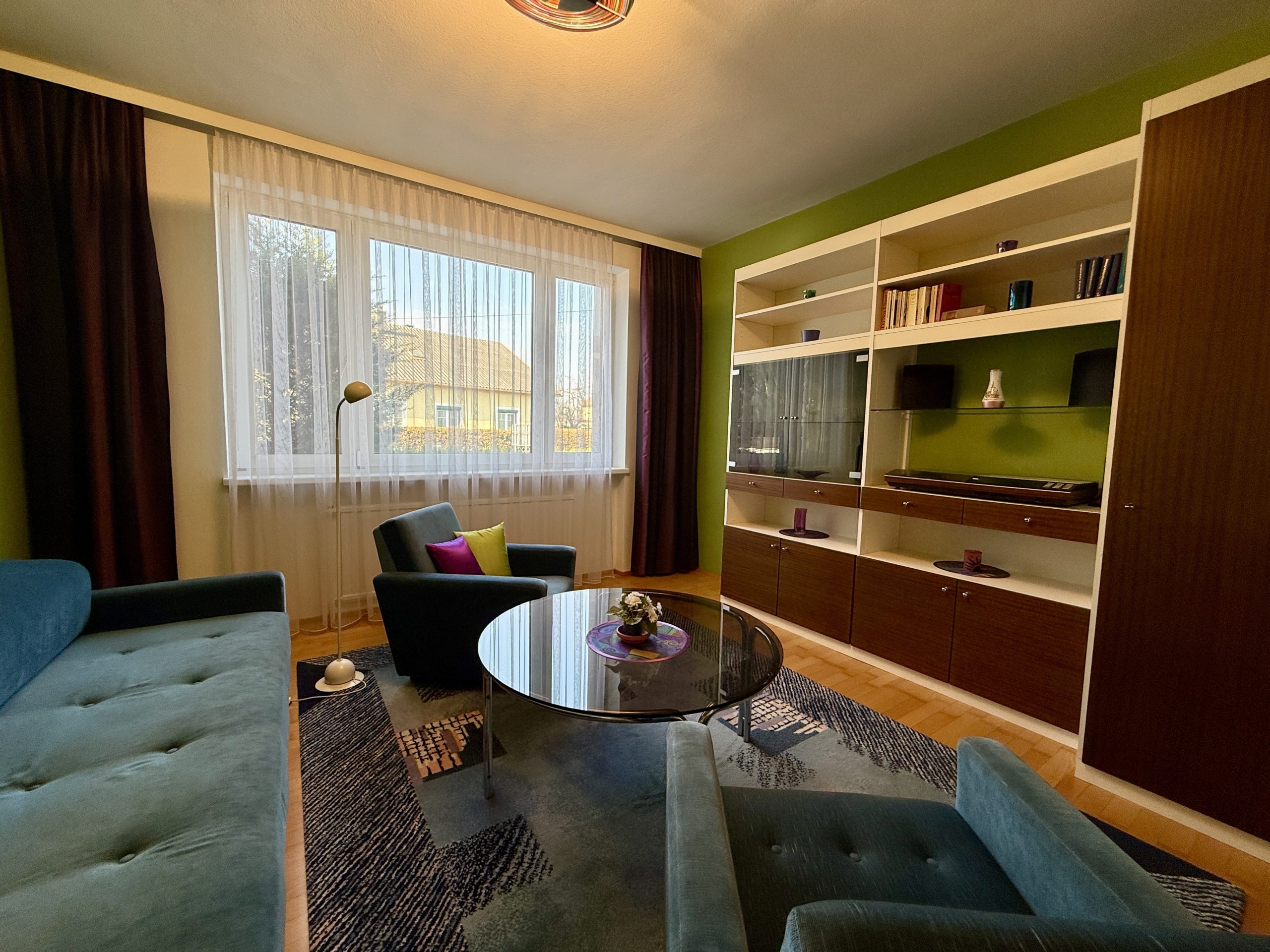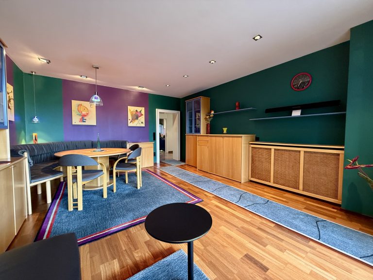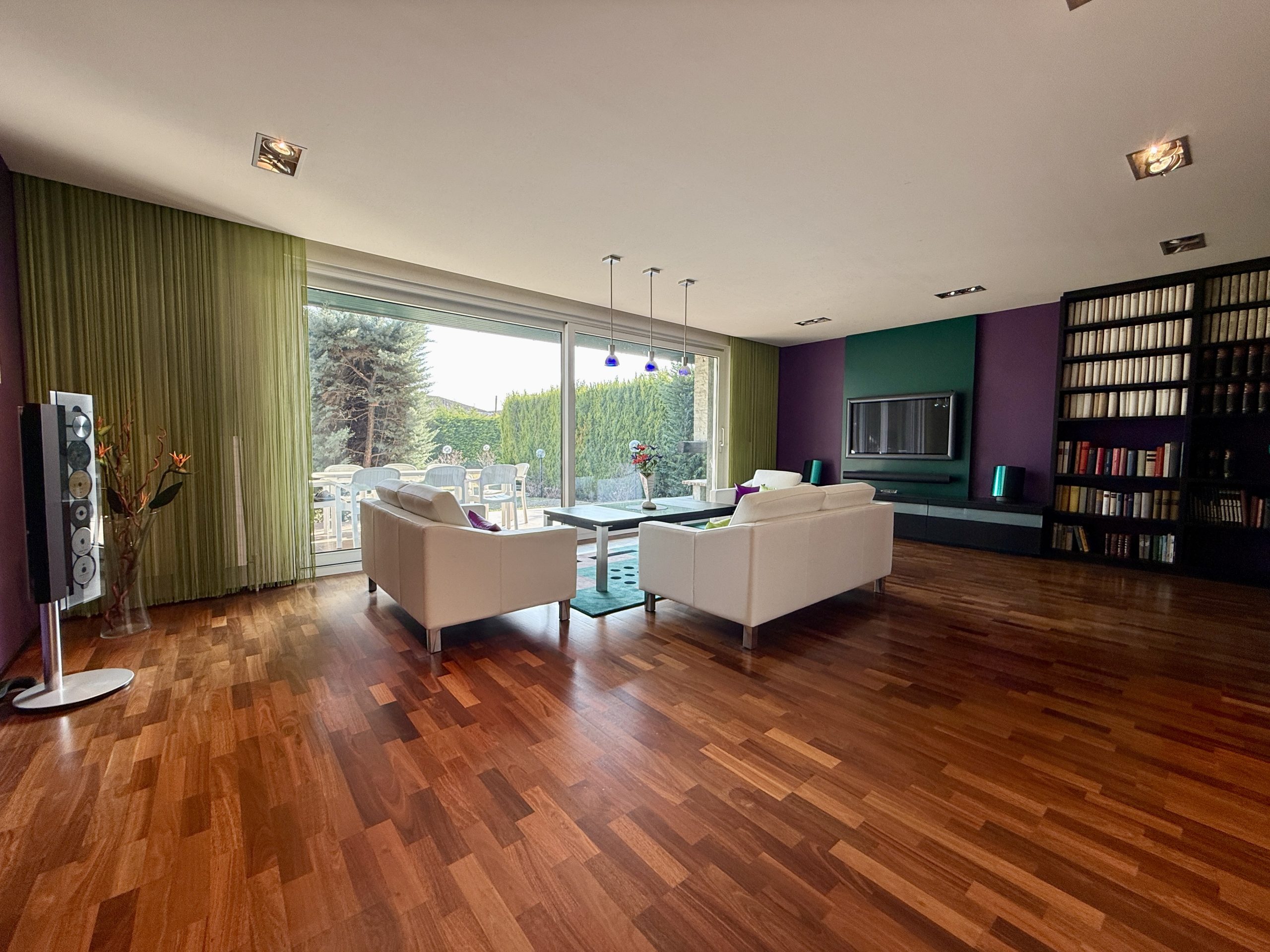 - ein außergewöhnlich großes Wohnzimmer, ausgestattet mit hochwertigem Parkettboden, der für eine warme, gemütliche Atmosphäre sorgt