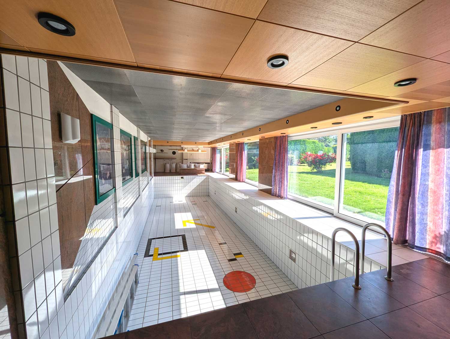 Ein absolutes Highlight ist die riesige Schwimmhalle – ein Raum, der echtes Urlaubsgefühl vermittelt und keine Wünsche offenlässt: