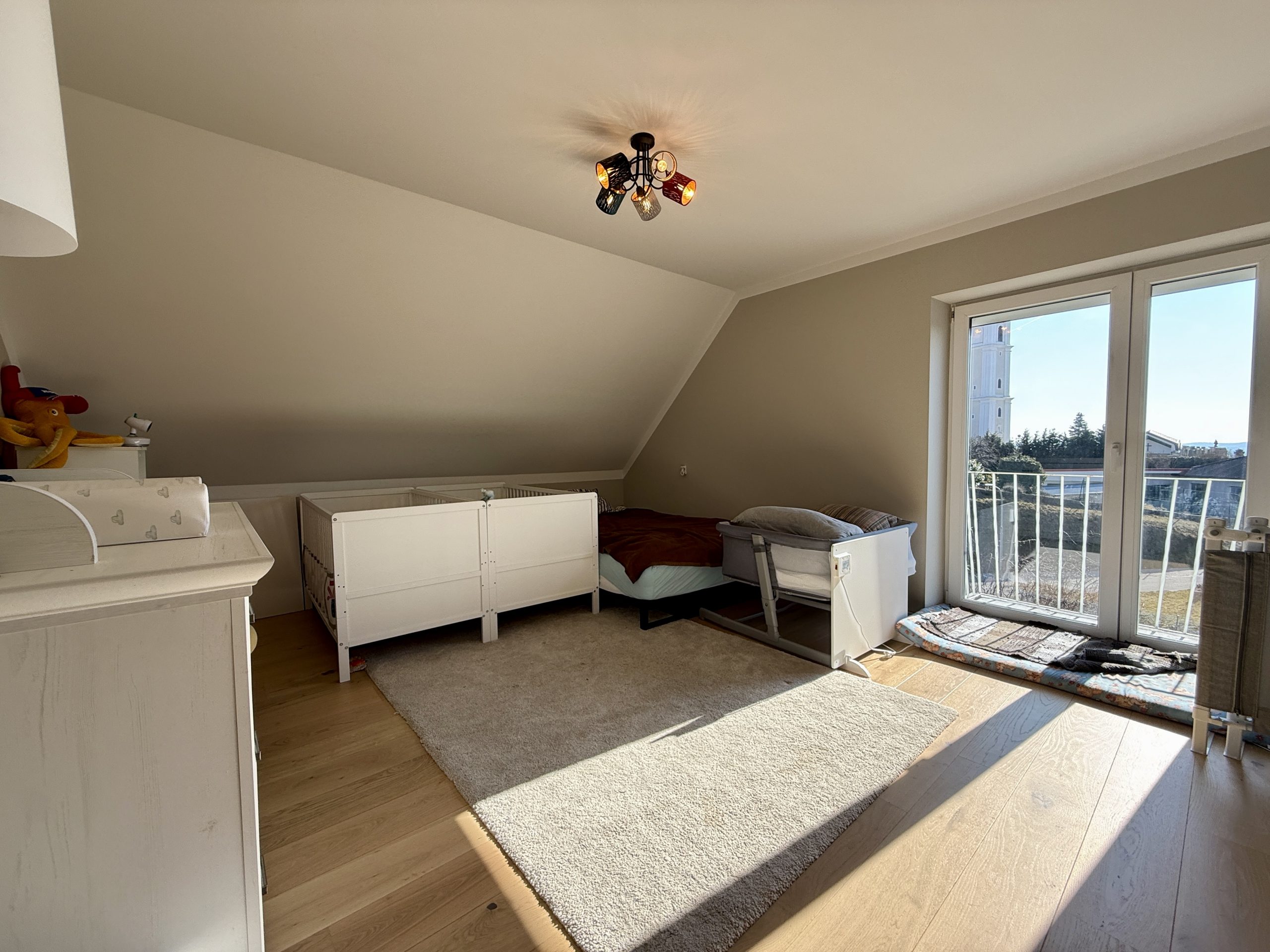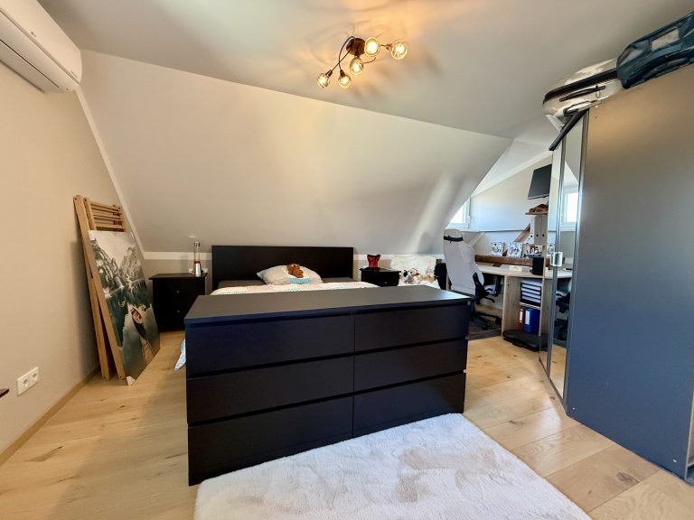 - Schlafzimmer 2, das sich mit wenig Aufwand in zwei getrennte Räume unterteilen lässt – ideal für Kinder, Gäste oder Homeoffice