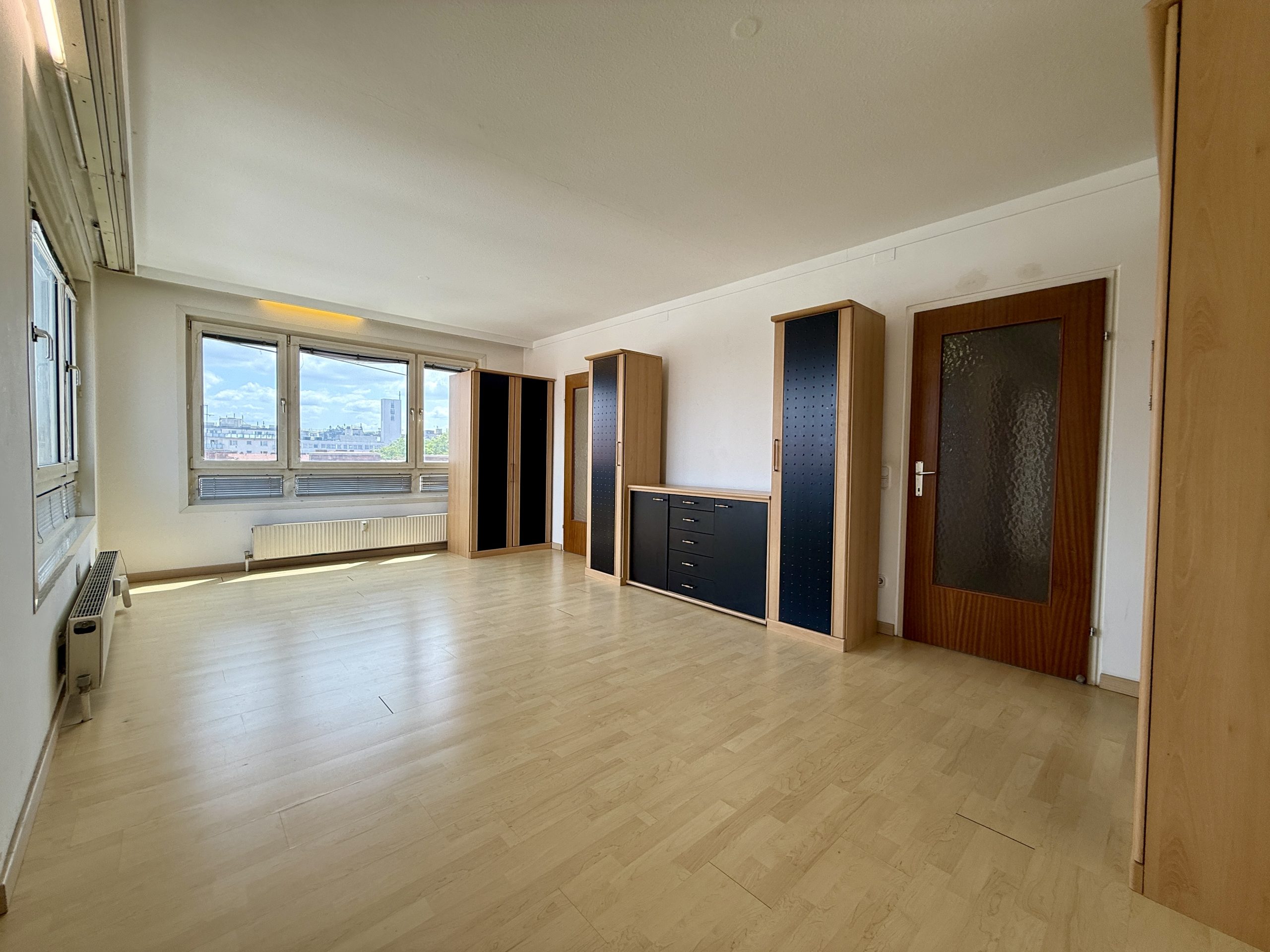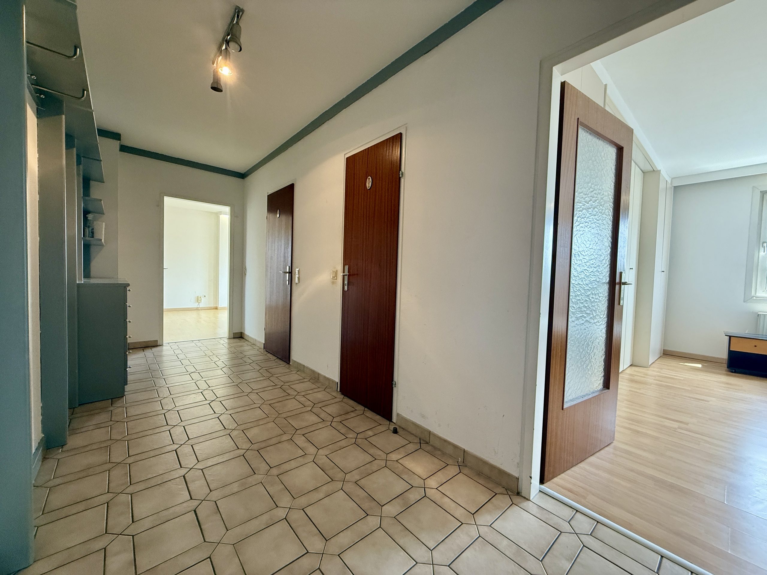 Die Wohnung bietet eine gut durchdachte Raumaufteilung: Vom zentralen Vorraum gelangt man in alle Zimmer. Das helle Wohnzimmer lädt zum Entspannen ein und bietet eine angenehme Wohnatmosphäre.