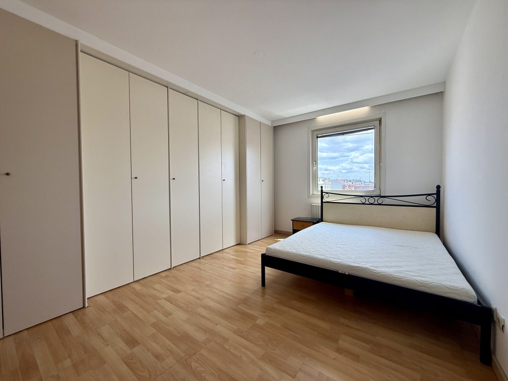 Ein großes Schlafzimmer sorgt für ausreichend Platz und Ruhe. Zusätzlich gibt es einen praktischen Abstellraum.