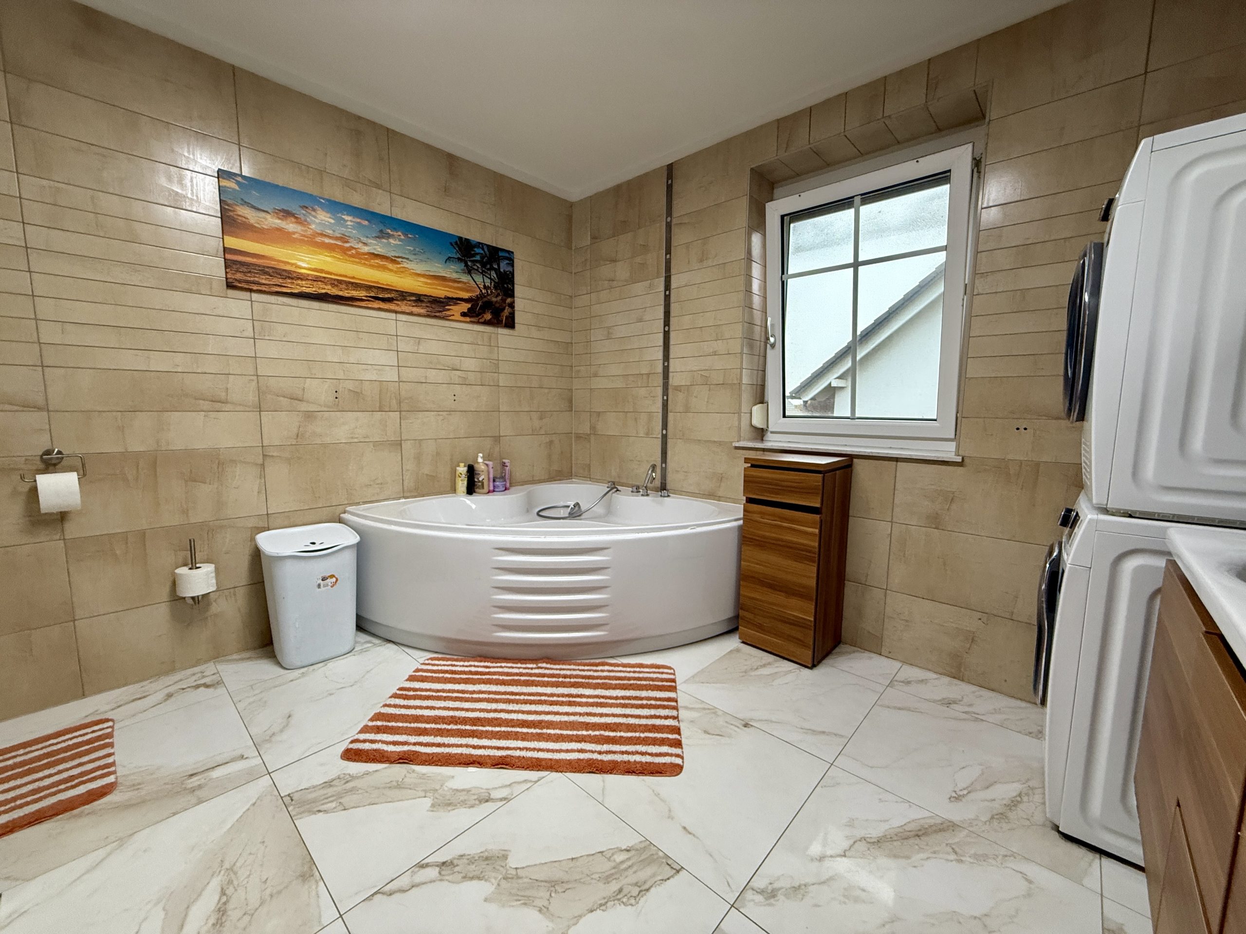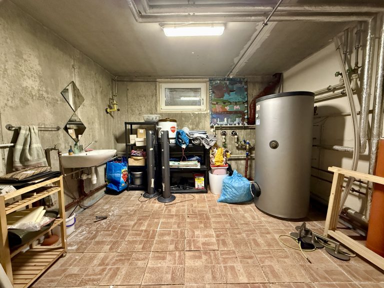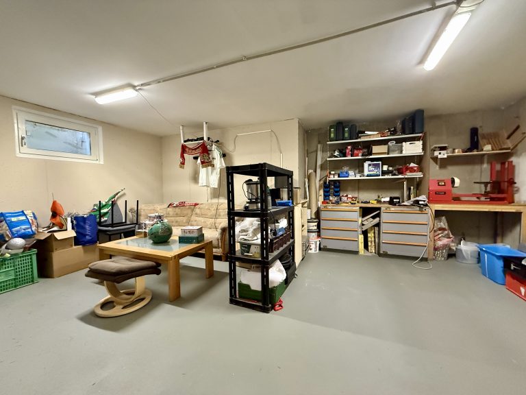 Im Obergeschoss stehen drei Schlafzimmer sowie ein großes Badezimmer mit Badewanne, Dusche und Toilette zur Verfügung. Der Keller eröffnet zahlreiche Nutzungsmöglichkeiten – ob Hobbyraum, Fitnessbereich oder zusätzlicher Stauraum.