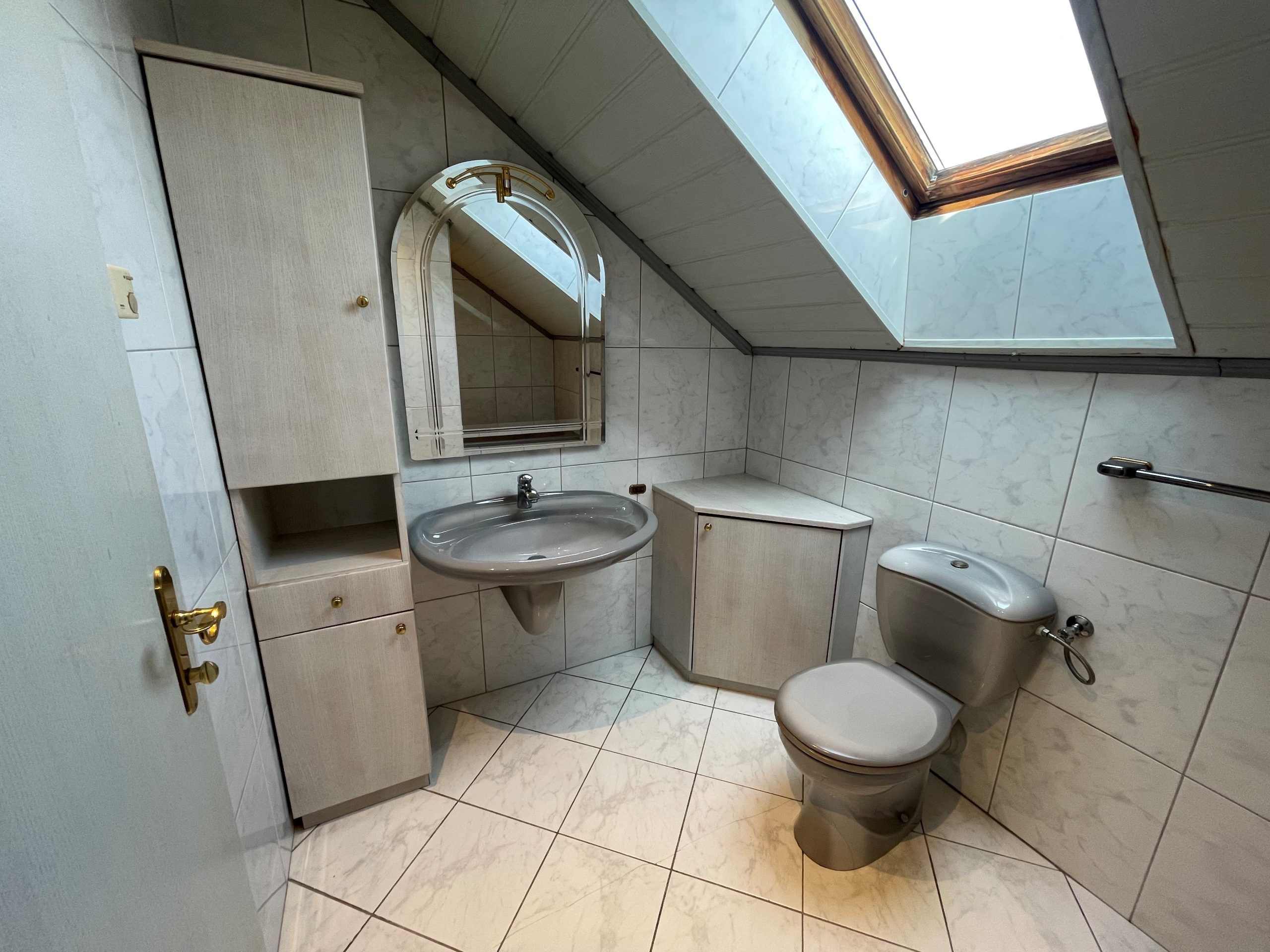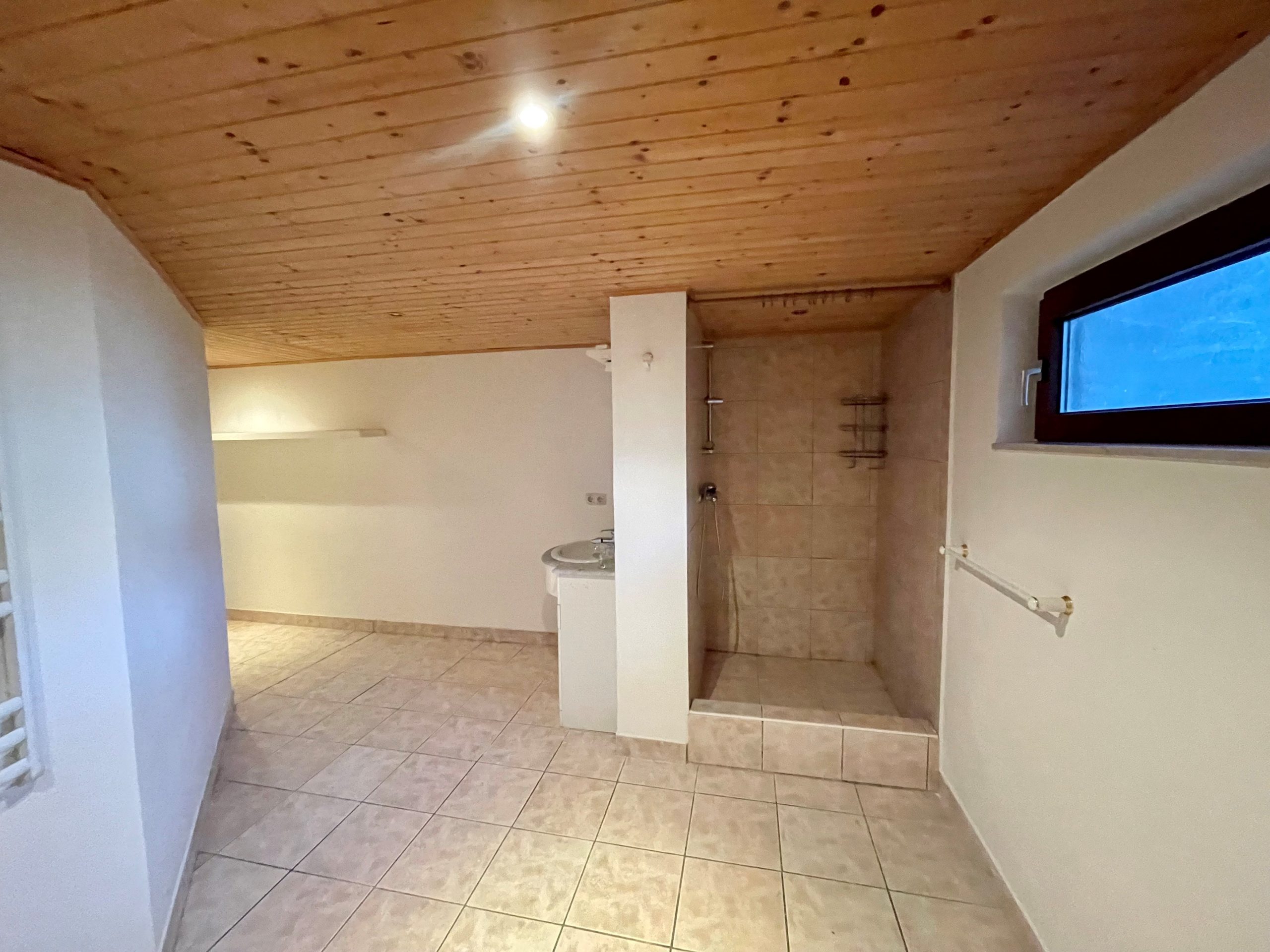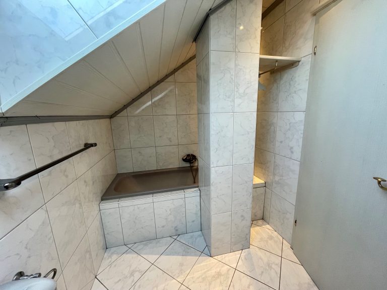 Im Obergeschoß befinden sich 2 Schlafzimmer und ein Badezimmer mit Badewanne.