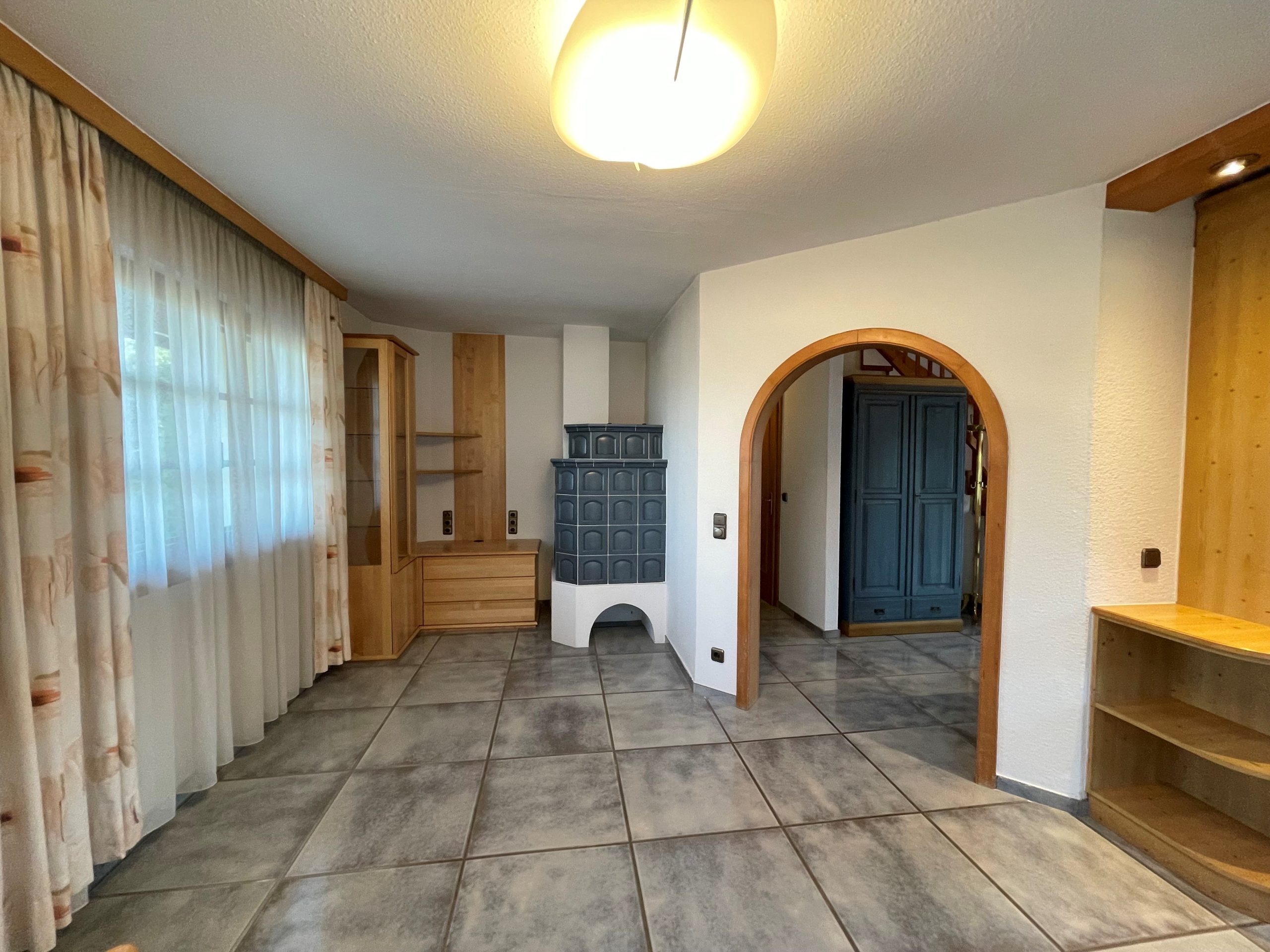 Beheizt wird das Haus im Erdgeschoß und im Badezimmer (Obergeschoß) mit Fußbodenheizung (Strom). Im Wohnzimmer befindet sich ein Kachelofen, mit dem das Haus zusätzlich beheizt werden kann. Im Keller befinden sich Radiatoren (Strom).